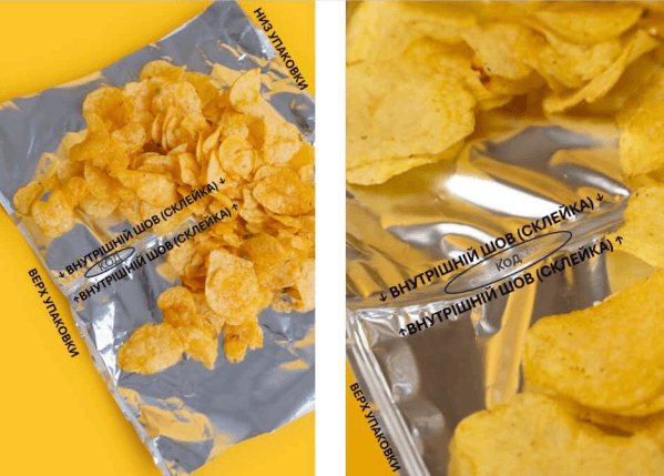 Акційний код – це десятизначний буквений набір символів, нанесений на склейці акційної пачки Lay’s, тобто знаходиться всередині пачки. Код нанесено сірим кольором – треба уважно передивлятися вертикальну склейку пачки.